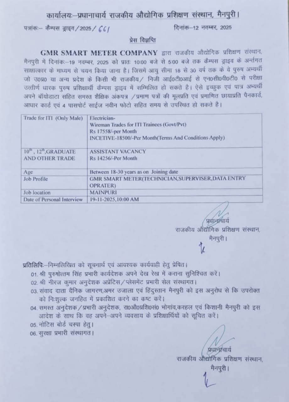 Place: राजकीय औद्योगिक प्रशिक्षण संस्थान, मैनपुरी