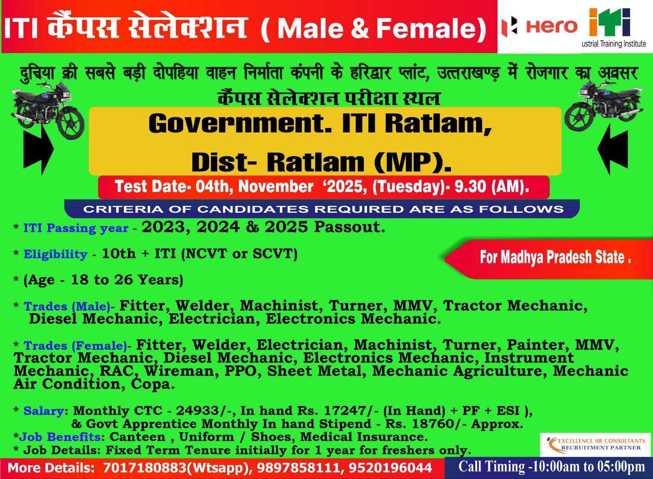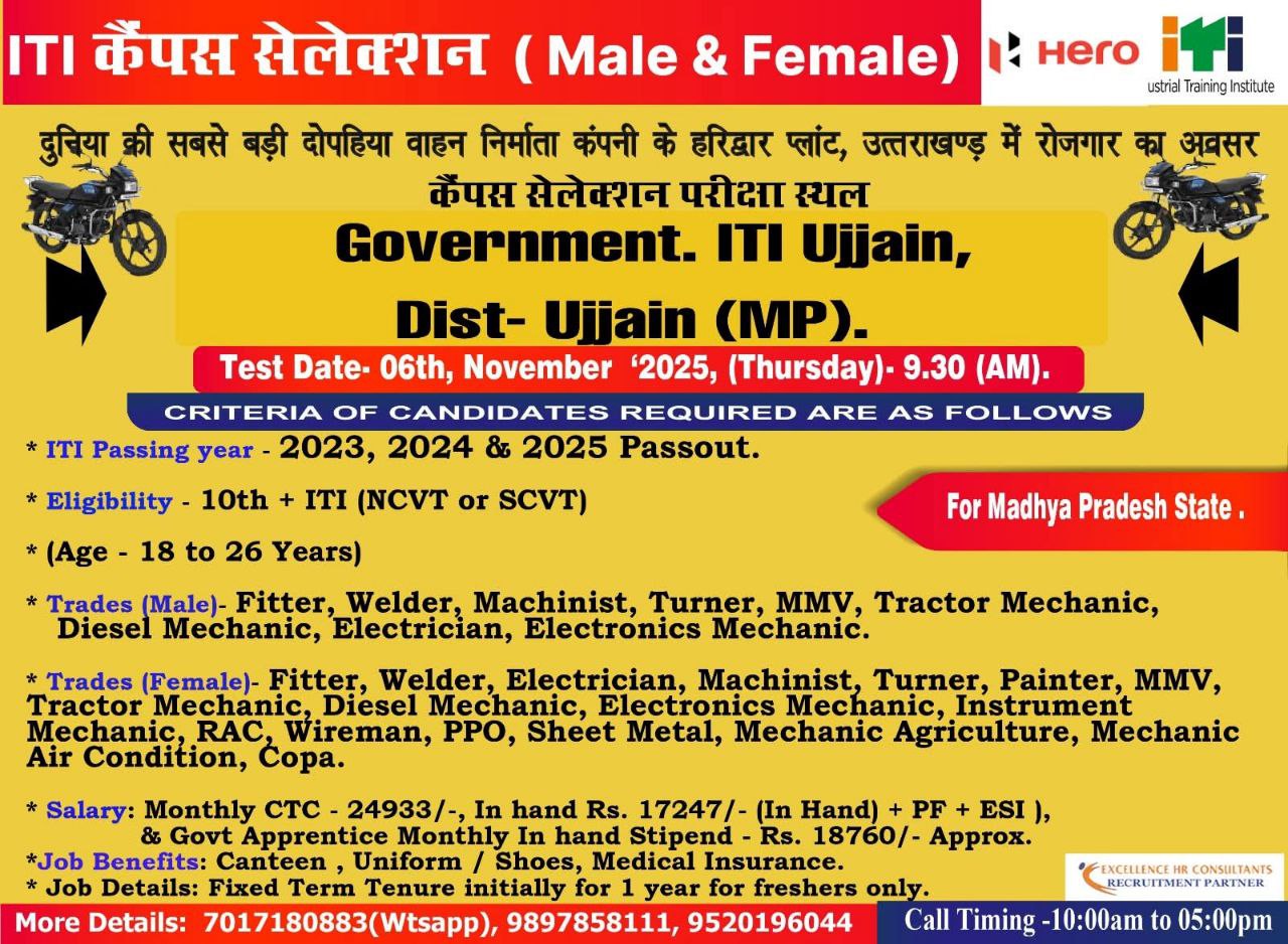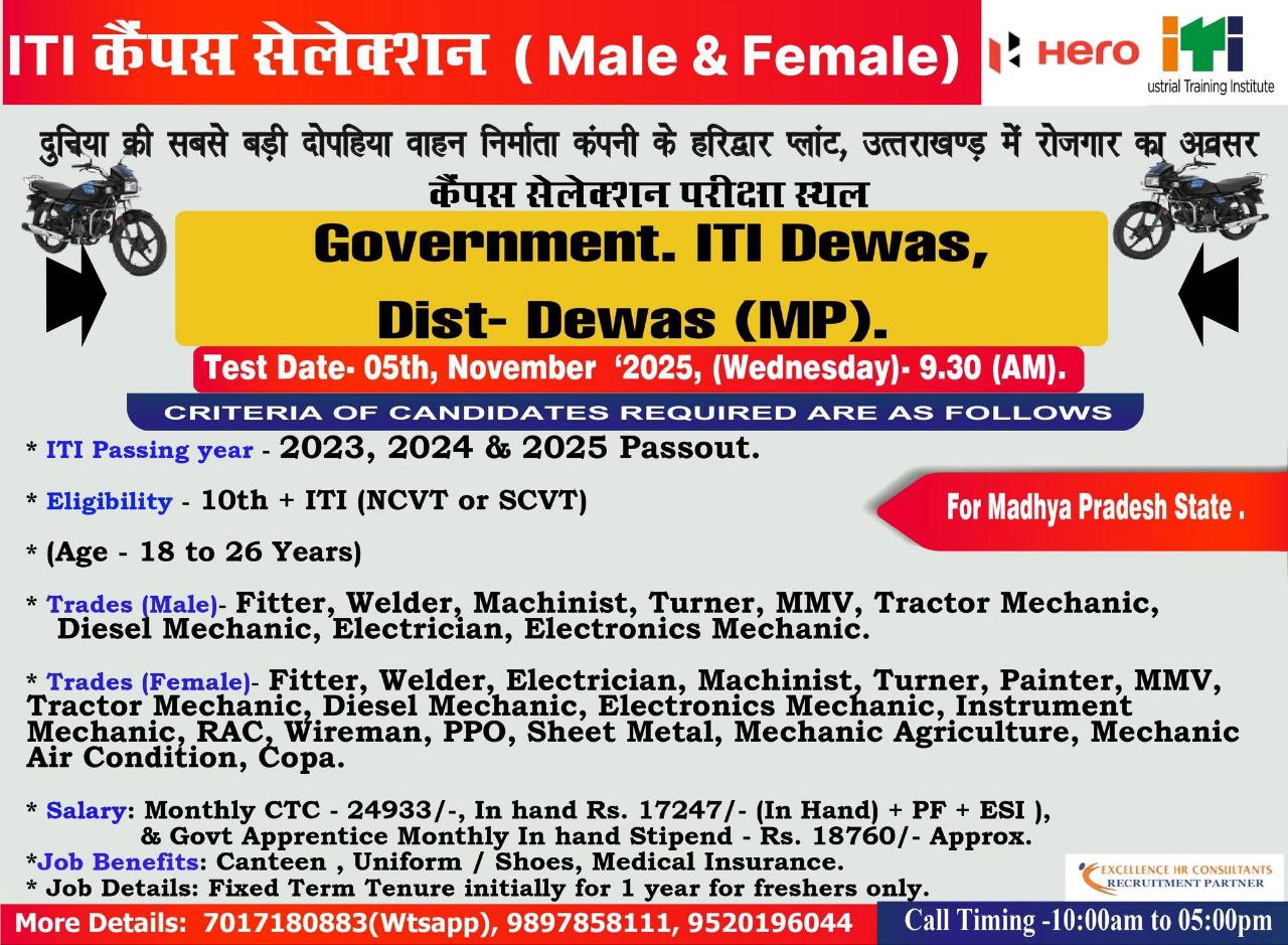 Hero Motocorp ITI Job Recruitment 2025 | ITI Campus Placement | ITI Job