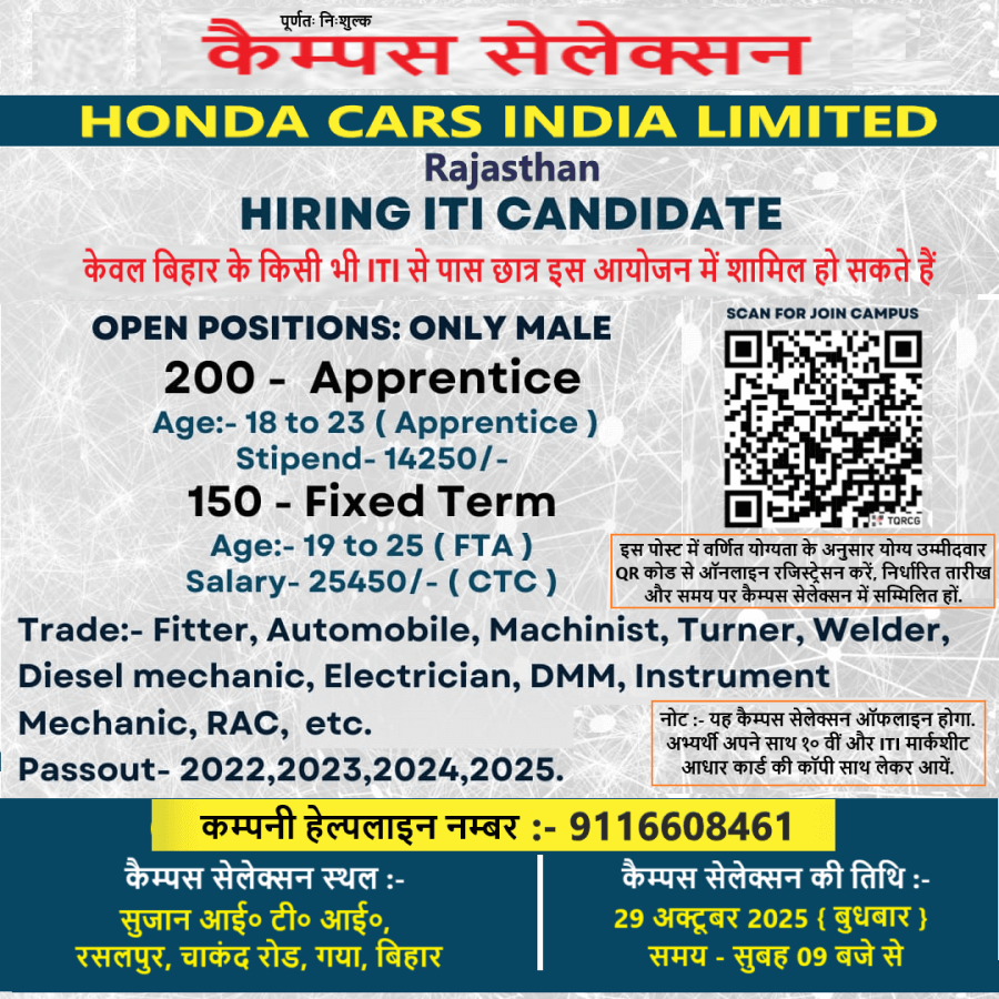 Honda Company ITI Job 2025 | Honda Company ITI Job Vacancy | Honda Company Job
