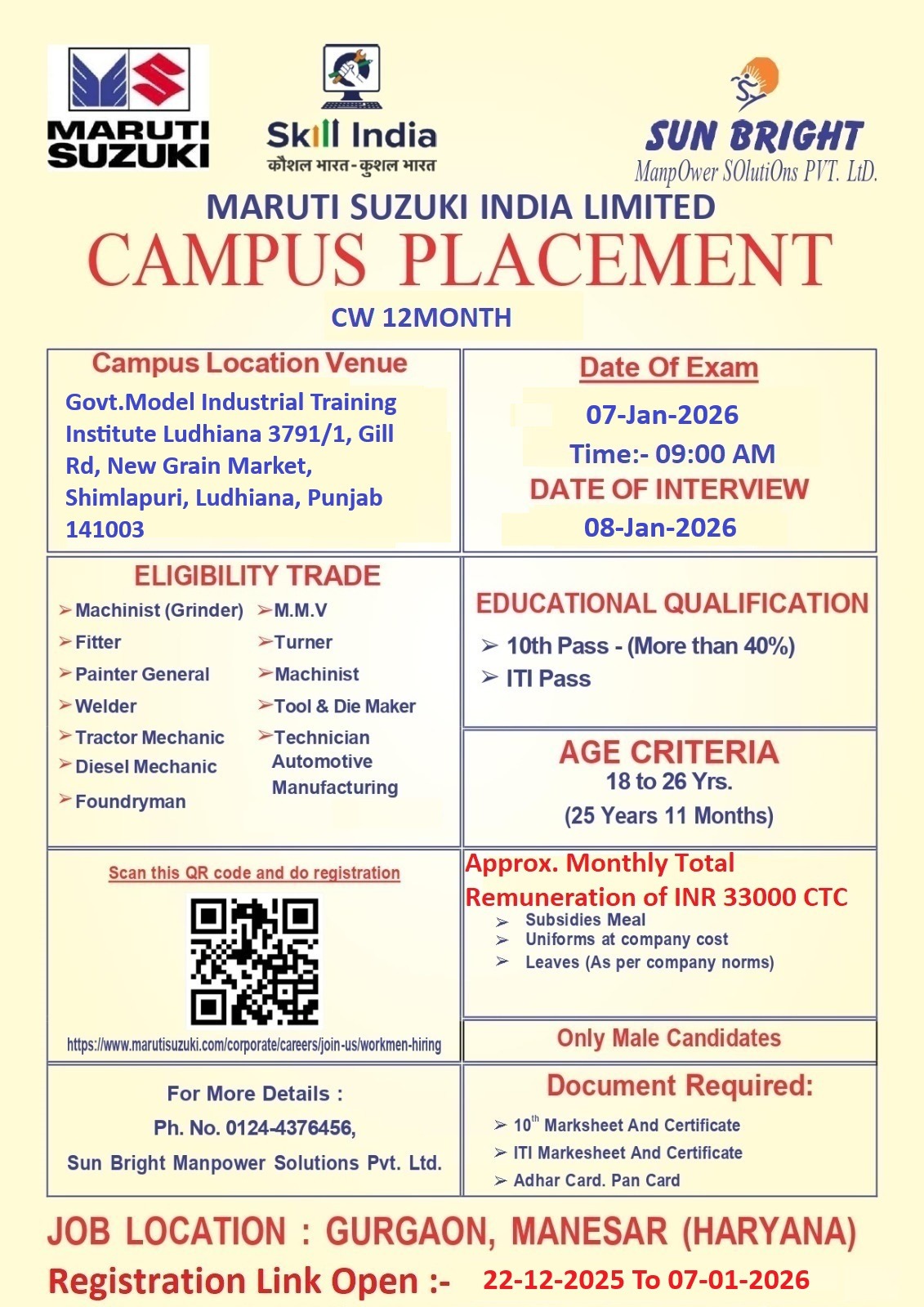 Eligibility Criteria for Maruti Suzuki CW Vacancy 2026