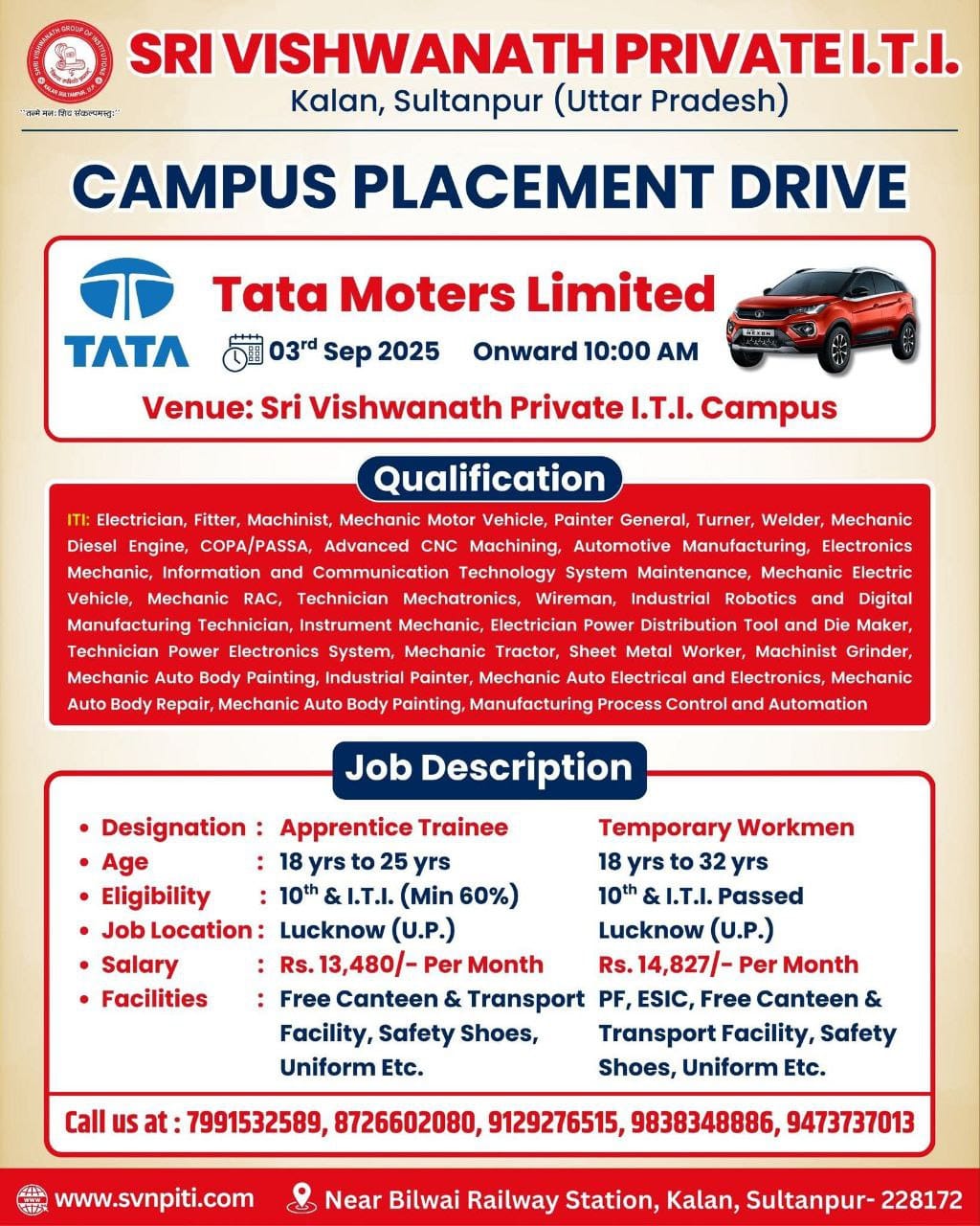 Tata Motors Recruitment 2025: टाटा मोर्टस में आईटीआई पास छात्रों की भर्ती की जा रहीं हैं । TATA Motors भर्ती के लिए एक कैम्पस का आयोजन कर रहीं हैं । इच्छुक उम्मीदवार इस कैम्पस में भाग ले सकते हैं । कंपनी उम्मीदवारों को कुछ विशेष सुविधा भी देगी । इस कैम्पस के बारे में सम्पुर्ण जानकारी नीचे दी गई हैं ।